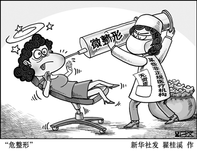 日前,国家卫计委等七部门联合印发《严厉打击非法医疗美容专项行动方案》,明确将以查处案件为抓手,全链条严厉打击涉及注射“微整形”的相关违法犯罪活动,健全长效机制,切实维护消费者合法权益。