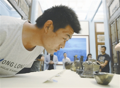 何刚之子何俊清在故宫第一次看见父亲当年捐赠的文物。视觉中国供图