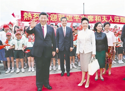 6月29日中午,中共中央总书记、国家主席、中央军委主席习近平乘专机抵达香港,出席将于7月1日举行的庆祝香港回归祖国20周年大会暨香港特别行政区第五届政府就职典礼并视察香港。