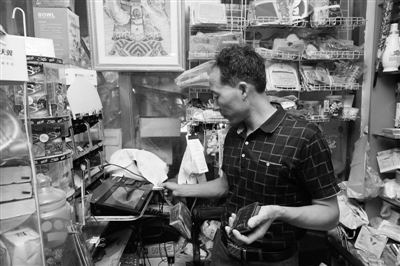 6月29日,陕西渭南大荔县许庄镇义井村村民蒋双平在自己家的杂货店利用金融机构安装的POS机领取“一卡通”里的补贴。