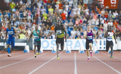 北京时间6月29日,在国际田联世界挑战赛捷克俄斯特拉发站比赛中,牙买加名将博尔特(图中)以10秒06的成绩获得男子100米冠军。此前博尔特宣布,将在今年田径世锦赛后正式退役。 新华社/美联
