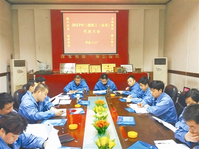 图为西安昆仑公司三工厂召开2017年度二级职工(会员)代表大会。刘海涛 摄