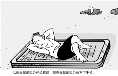 以前失眠是因为神经衰弱,现在失眠是因为放不下手机。赵春青 画