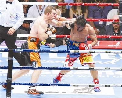 7月2日,霍恩(左)与帕奎奥在比赛中。