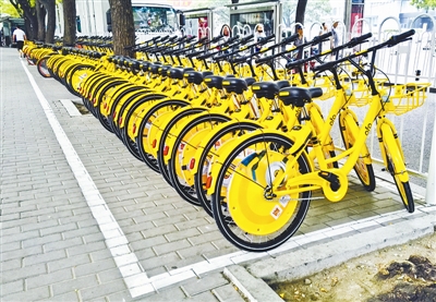 7月2日,北京,三里屯设置共享单车电子围栏停车区。