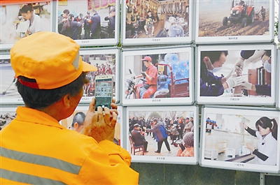 本报讯(记者毛浓曦)6月29日至30日,陕西咸阳市中华广场成为全市焦点。该市秦都区总工会为百行百业的一线普通劳动者拍了100张“火热”的劳动照片并展出。“这是配石头镜的,这是剃头匠,这是裁缝,还有挖地沟的农民工、卖早餐的、送快递的,有意思。”“有些行业都快消失了,新的行业又诞生了,值得记录下来。”参观的人络绎不绝,指指点点。