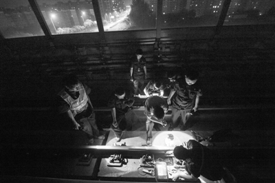 午夜时分,城市逐渐入睡,背着器械和装备,地铁探伤工们开始了一天的工作……