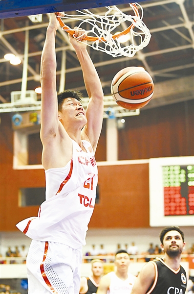 图为中国队员胡金秋扣篮。