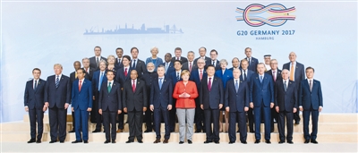 左图:7月7日,二十国集团领导人第十二次峰会在德国汉堡举行。国家主席习近平出席并发表题为《坚持开放包容 推动联动增长》的重要讲话。