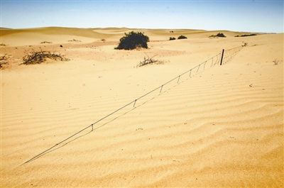 侍生材家当年在草场周围立的围栏,现在已被沙漠吞噬了一大半。