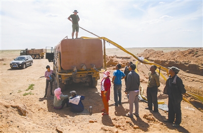 为了保证新种植的梭梭树的成活率,他们不得不雇人给树浇水。因为这不仅关系到补贴,还决定了几年后能否种上有“沙漠人参”之称的肉苁蓉。