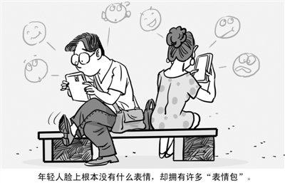 年轻人脸上根本没有什么表情,却拥有许多“表情包”。赵春青 画