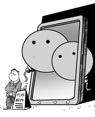 购买和使用这种“微信炸弹”的目的是什么?纯属无聊,以整人为乐?据说被投放“微信炸弹”的往往是一些赌博群,有人赌输了气不过,便泄私愤。赌博违法,应该予以打击,而“微信炸弹”扰乱了正常的网络生活,更应该被及时遏制。技术上的恶作剧和违法还需技术来“破”,对那些堂而皇之售卖“微信炸弹”的行为,对那些经常用此种手段扰乱他人的人,应该采取限制功能、账号封停等措施——净化网络环境要及时查缺补漏。赵春青/图 童生/文