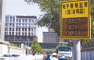 7月10日,北京市东城区的“电子警察”正在对违法鸣笛车辆进行抓拍曝光。