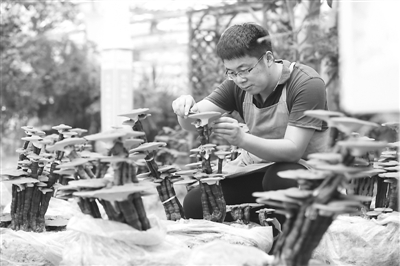 盛夏时节,在山东即墨市大信镇华盛绿能创客基地,90后大学生创客鹿秀栋培育的盆景灵芝迎来采收和制作旺季。鹿秀栋是山东即墨人,2014年从青岛农业大学毕业后开始进入灵芝种植加工行业。他结合专业特长,不断向外地农技机构和种植户学习,掌握了灵芝培育、嫁接及定型等关键技术,研发出十多个系列的“盆景灵芝”,产品销往北京、上海等地。