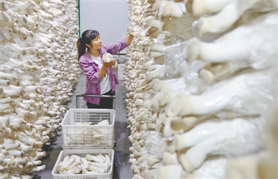 河北省威县是国家扶贫开发重点县。近年来,威县在实施产业扶贫过程中,通过“公司+合作社+家庭农场+农户”的模式发展特色食用菌种植产业,开辟了一条群众脱贫创收新路径。目前,全县种植食用菌600余亩,年产灵芝、杏鲍菇、香菇、鸡腿菇等食用菌鲜品1200多吨,种植户人均年增收2万余元。 新华社记者 朱旭东 摄