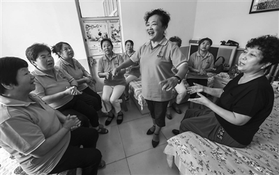 7月12日,河北霸州“幸福小院”里失独和空巢老人与当地爱心人士在一起唱歌。