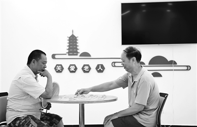 7月13日,在重庆市江北区铁山坪街道唐桂社区养老服务站,两名老人在棋牌室内下象棋。江北区创新社区养老服务模式,构建起区、街(镇)、社区(村)三级养老服务平台。截至目前,全区已建成各级养老服务中心(站)85个。 新华社记者 王全超 摄