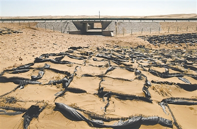 在穿越沙漠路段,都设有鳍形沙袋防风固沙,并且建有动物迁徙通道。