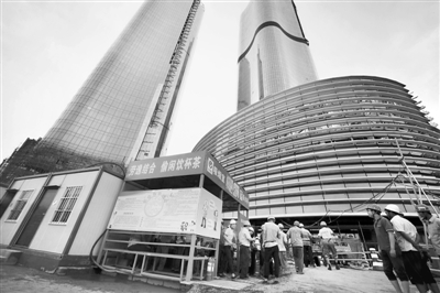 7月14日中午,高温闷热天气持续。在北京大望京美瑞项目工地上,建筑工人们下班后在这里找到了配备好的饮品。