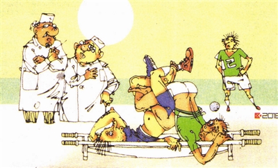 绿茵场上双方激战正酣,两个球员的“缠斗”更是难解难分,裁判的哨声已是无能为力,只能请来外科医生考虑手术治疗。【俄罗斯】维克多