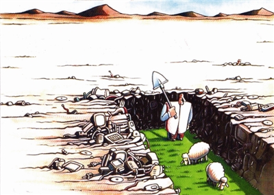 羊儿在垃圾成患的田野里艰难地寻找青草,农民“掘地三尺”终于见到绿色,虽然为此流了不少汗水,但爱的奉献得到实现。【土耳其】玛 加