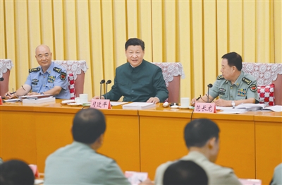 7月19日,新调整组建的军事科学院、国防大学、国防科技大学成立大会暨军队院校、科研机构、训练机构主要领导座谈会在北京八一大楼举行。中共中央总书记、国家主席、中央军委主席习近平出席座谈会并发表重要讲话。 新华社记者 李刚 摄