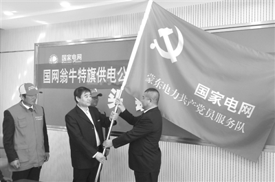 国网翁牛特旗供电公司党委书记乔建波为桥头供电所共产党员服务队授旗