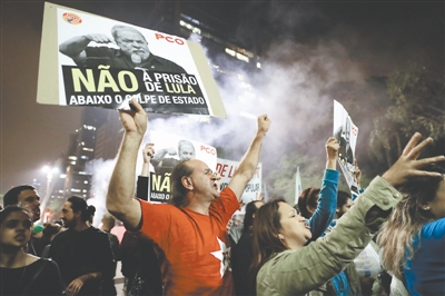 当地时间7月12日,巴西圣保罗,前总统卢拉的支持者涌上街头,抗议卢拉被判贪污罪名成立。 东方IC 供图