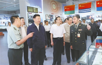 下午3时30分许,习近平等领导同志来到中国人民革命军事博物馆,走进展厅参观展览。展览主体内容以时间为脉络,突出展示我军90年征程中历经的重大战役战斗、重大历史事件、重要决策过程和重大发展成就,重点设计了“井冈山会师”“论持久战”“攻克锦州”“华北军事演习”“进驻香港澳门”“汶川抗震救灾”“古田全军政治工作会议”、我军现役主要装备模型展示等景观和展项,安排了陆海空军武器装备训练模拟互动项目,通过1000多张照片、1300余件文物和大量图表、制字、油画、景观、视频、触摸屏以及一批主战装备实装、装备模型等,全面反映了90年来人民军队在党的领导下走过的光辉历程、建立的丰功伟绩,充分展现了我党我军在长期革命斗争和建设实践中培育形成的光荣传统和优良作风,生动呈现了军队建设改革发展的巨大成就。