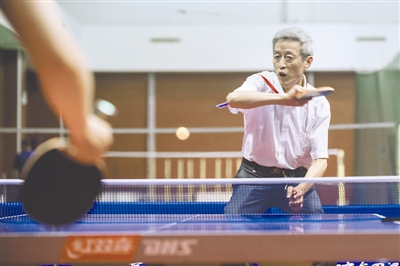 7月19日晚,劳模们在全总国际交流中心展开了一场乒乓球友谊赛。