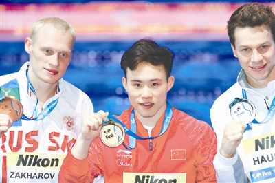 当日,在匈牙利布达佩斯举行的第17届国际泳联世界游泳锦标赛跳水项目男子3米板决赛中,中国选手谢思埸以547.10分的总成绩获得冠军。 新华社记者 龚兵 摄