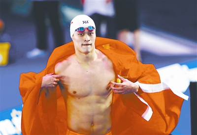 当日,在匈牙利布达佩斯进行的第17届国际泳联游泳世锦赛男子400米自由泳决赛中,中国选手孙杨以3分41秒38的成绩夺冠。