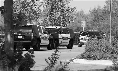 7月23日,在美国得克萨斯州圣安东尼奥,警车停靠在一家涉事的沃尔玛超市停车场。