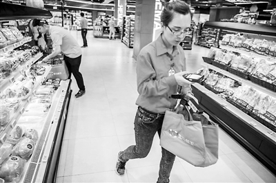 随着互联网商业模式的蓬勃发展,传统商业模式与新兴电子商务的融合不断深入,一批线下超市、零售店也“试水”互联网,依托线下实体店的网络资源、供应链管理及物流配送能力,即时送货到家成为它们新的竞争优势。而连接这些实体店和消费者的是一个个的超市配送员,他们每天通过手机接单,根据顾客需求挑选相应的产品,送货到家。以前不为人熟知的配送员也从幕后走到台前,成为了实体店“对抗”电子商务的重要力量。图为北京十里堡地区一家超市的配送员正在为顾客挑选相应的产品。