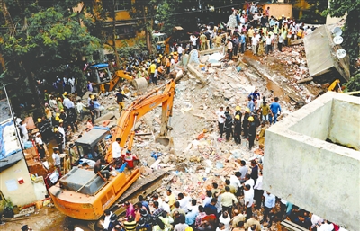 这是7月25日在印度孟买拍摄的居民楼垮塌事故现场。