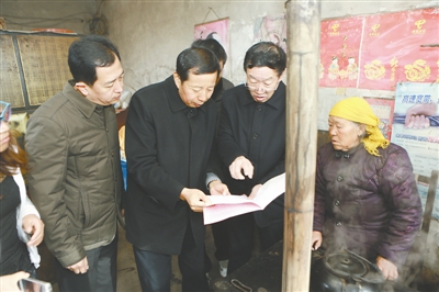 ①长治市人大常委会副主任、市总工会主席崔建泰(左二),长治市总工会党组书记、常务副主席光宇航(左一)下乡走访贫困户