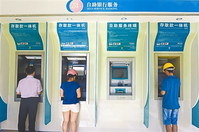 7月31日,储户在海南琼海的一处银行自动柜员机前办理业务。