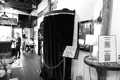 在北京首家民营小剧场——蓬蒿剧场的入口处,指示牌上的文字提示观众,观剧后可以将剧评发送至相关邮箱。本报记者 王维砚摄