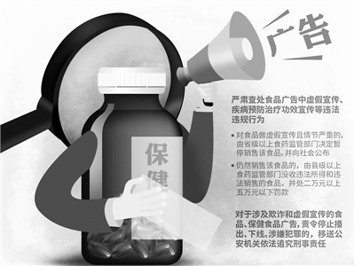 今年7月13日,国务院食品安全办、公安、工商、质检、广电、网信等九部门联合启动保健品虚假宣传专项整治。根据整治方案,九部门将在为期半年的时间里排查食品、保健食品生产企业和经营企业,涉及食品和保健食品标签虚假标识声称行为,以及利用网络、会议营销、电视购物、直销、电话营销等方式违法营销宣传、欺诈销售食品和保健食品行为等。