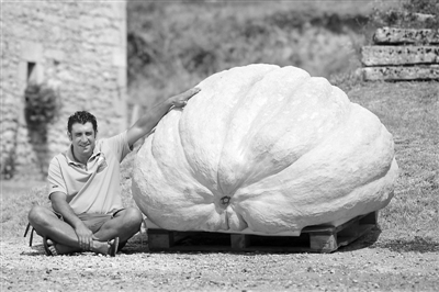 目前,世界上有记录的最大人工种植南瓜出自于法国科尔萨克的农民法布里·鲍迪欧之手。这个巨大的南瓜重达643公斤,最长处和一个成年人身高差不多。(东方IC 供图)