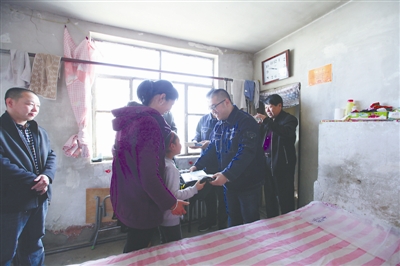 巴林右旗供电分公司团支部团员青年一行深入扶贫联系点查干诺尔镇大坝村进行慰问。为侯永芳母女送去慰问金和书包文具等