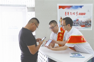 巴林右旗供电分公司团支部在“青年文明号开放周”期间组织团员青年服务用电客户,向用户讲解电子支付电费方法