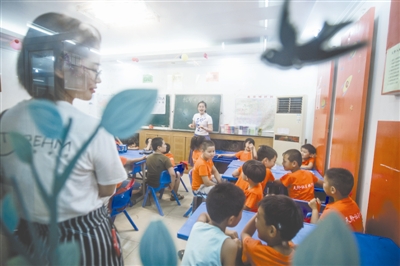 8月2日下午,北京东南五环的天阶社区公益学校里,一堂“我眼中的未来”艺术课正在进行。约20平方米的教室里,30多个小学生围坐在拼起来的桌子旁写写画画。