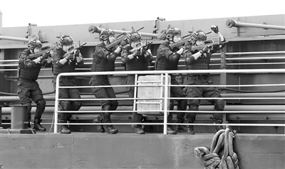 7月31日,特警队员们对“歹徒”藏身的船舶展开突击。