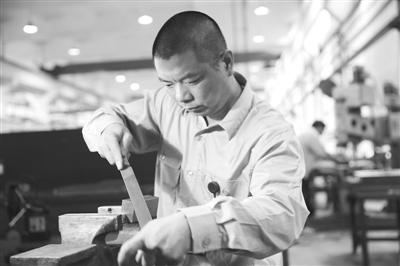 在飞机制造中,钳工负责为零件做最后一道手工精密加工,其精细程度、艰苦程度和枯燥程度都是常人难以想象的。每天,黄群必须半弓着高大的身躯,至少站上八九个小时,反复做锉修动作8000多次。