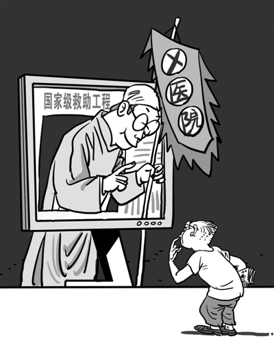 《南方都市报》记者经过暗访、调查,曝光了一家民营医疗机构,其虚构国家救助工程,以援助的名义招揽穷困患者看病,却在诊疗过程中,肆意过度医疗,牟取暴利。并且,这已经演变为一部分民营医院的行业潜规则,仅在所谓肝病治疗领域,就有超20家此类民营医疗机构标榜自己是某个医疗救助、医疗扶贫工程的定点医院。