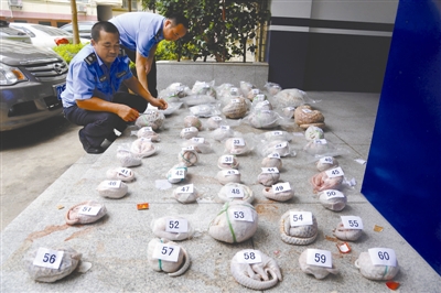 8月9日,广西南宁市森林公安局在交易场附近的某高层小区22楼住户里,查获一个穿山甲仓库。在这个30多平方米的出租屋里,发现60多只穿山甲(冻体),最大的一只重有10多公斤,最小的不足0.25公斤。目前案件还在进一步处理当中。