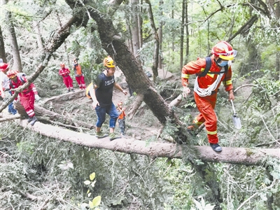 当日,由中国国际救援队和四川武警广元消防支队等组成的九寨沟地震紧急救援队又一次派出20余人,前往九寨沟景区熊猫海附近,继续寻找失联人员。