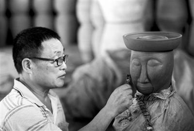 8月9日,蒋太华在陶器厂里手工制作陶器。